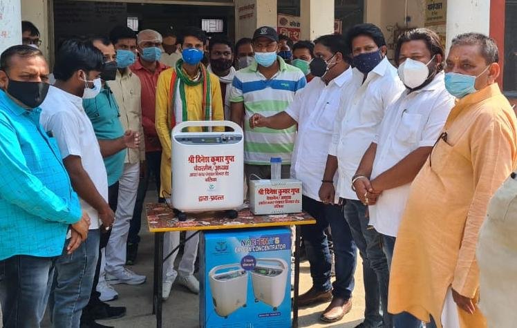 नप चेयरमैन दिनेश गुप्ता ने अस्पताल प्रशासन को सौंपा ऑक्सीजन कंसिट्रेटर