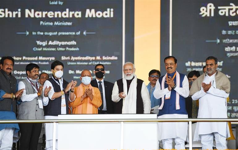 प्रधानमंत्री ने कहा, ‘‘मोदी और योगी भी चाहते तो 2017 में सरकार बनते ही यहां आकर फोटो ¨खचवा लेते, पर होता कुछ नहीं।’’ उन्होंने कहा कि पहले राजनीतिक लाभ के लिए ढांचागत परियोजनाओं की घोषणा होती थी। परियोजनाएं कैसे जमीन पर उतरें, उनके लिए धन का प्रबंध कैसे हो, दशकों तक तक ये उसी में अटकी रहती थीं। फिर बहानेबाजी शुरू होती थी। उन्होंने कहा कि ढांचागत विकास हमारे लिए राजनीति का नहीं बल्कि राष्ट्रनीति का हिस्सा है। हम ये सुनिश्चित कर रहे हैं कि परियोजनाएं अटके नहीं, लटके नहीं, भटके नहीं। हम ये सुनिश्चित करने का प्रयास करते हैं कि तय समय के भीतर ही ढांचागत का काम पूरा किया जाए। अब डबल इंजन की सरकार के प्रयासों से आज हम उसी हवाईअड्डे के भूमिपूजन के साक्षी बन रहे हैं।