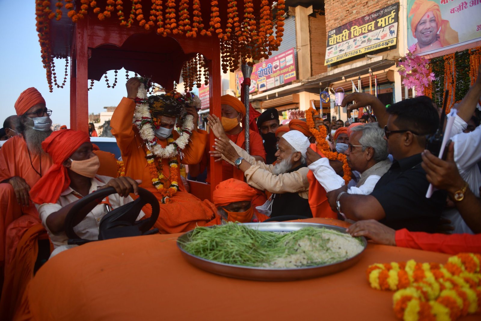 विजयादशमी के दिन मंदिर परिसर से निकलने वाली शोभायात्रा का स्वागत करते हैं मुस्लिम समाज के लोग