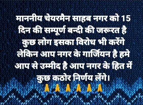 यहां हर सुबह दो-तीन लोगों के मौत की सूचना से नगरवासी भयभीत सा है। अपुष्ट आंकड़ों की माने तो नगर में अब तक करीब 30 लोगों की मौत हो चुकी है। लोगों के मौत के बढ़ते आंकड़ों के कारण ही अब नगर को 15 दिन तक बंद करने पर आनलाइन चर्चा जारी है किंतु अब तक कोई निर्णय नहीं लिया जा सका है। सभी नगरवासी अब नगर के चेयरमैन दिनेश गुप्ता, अखिल भारतीय उद्योग व्यापार मंडल अध्यक्ष प्रशांत कुमार मंटू और संयुक्त व्यापार मंडल संग अन्य व्यापारी नेताओं के अंतिम निर्देश का इंतजार कर रहे है।
