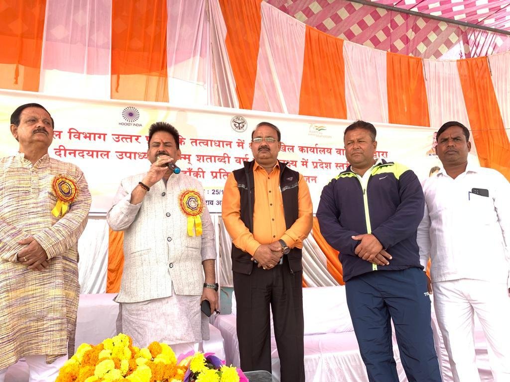 वाराणसी : पं0 दीन दयाल जन्म शताब्दी वर्ष के उपलक्ष्य में प्रदेश स्तरीय सीनियर पुरूष हॉकी प्रतियोगिता का आयोजन दिनांक 25 से 30 नवम्बर तक डा० भीमराव अम्बेडकर कीड़ा संकुल लालपुर, वाराणसी में किया जा रहा है। जिसमें प्रदेश की 18 मण्डलों की हाॅकी टीमें प्रतिभाग करेंगी। प्रतियोगिता का शुभारम्भ मुख्य अतिथि महेश चन्द्र श्रीवास्तव, अध्यक्ष भाजपा काशी क्षेत्र के कर कमलो द्वारा किया गया। इस अवसर पर विशिष्ट अतिथि के रूप में दिनेश कालरा व डा० ए०के० सिंह चेयरमैन विकास एजुकेशनल ग्रुप, के०वी० रावत, अवैतनिक सचिव, हॉकी वाराणसी उपस्थित रहे।