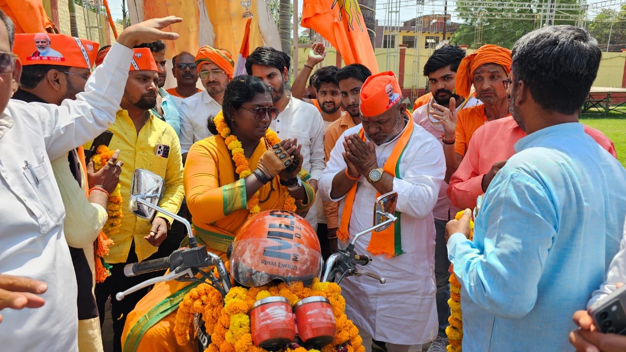 वाराणसी : राजलक्ष्मी बुलेट से देश भ्रमण पर निकली हैं, वह 21 हजार किलोमीटर की यात्रा पूरी कर दिल्ली पहुंचेगी, जहां 18 अप्रैल को यात्रा का समापन होंगा.’वोट फॉर मोदी’ के संदेश के साथ 21 हजार किलोमीटर की यात्रा पर ‘बुलेट रानी’,18 अप्रैल को दिल्ली में होगा समापन मोदी को जिताने की अपील करती तमिलनाडु के मदुरै की रहने वाली बुलेट रानी राजलक्ष्मी मंदा सोमवार को वाराणसी पहुंची.