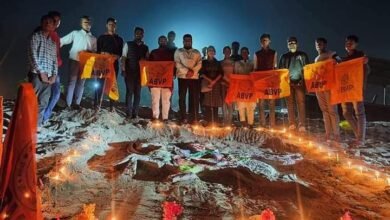अभाविप के कार्यकर्ताओं ने रेत में उकेरा रानी लक्ष्मीबाई का चित्र