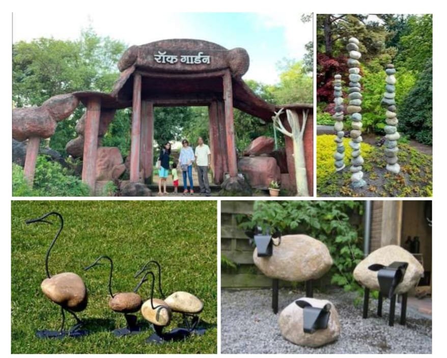 – रॉक गार्डन- स्थानीय पत्थरों से जीव जंतुओं की आकृति, बैठने के स्थान