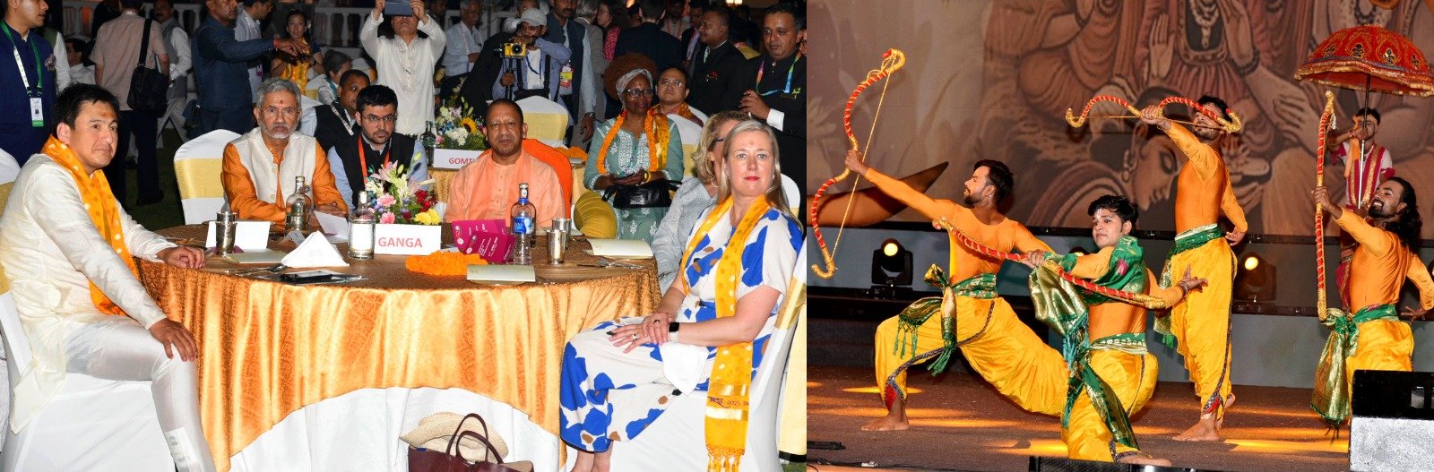 देवी गंगा की पूजा करने के लिए प्रतिदिन पुजारियों द्वारा गंगा आरती की जाती है और पवित्र अनुष्ठान, झिलमिलाते दीपक और गूंजते मंत्र एकता और साझा समृद्धि का एक शक्तिशाली अनुस्मारक हैं।इसके बाद प्रख्यात संगीतकार डॉ. राकेश कुमार ने राग भिन्ना शादज और बनारसी धुन जैसी सुंदर रचनाएँ बजाईं, दूसरी नृत्यांगना मैत्रयी पहाड़ी और उनकी मंडली ने चारुकुला, मयूर, पाई डंडा, दीवारी, ढेडिया, रासलीला, झूमर समेत उत्तर प्रदेश के विभिन्न लोक नृत्यों का प्रदर्शन किया।विदेश मंत्री डॉ. एस जयशंकर ने ईयू, यूएनसीटीएडी, ऑस्ट्रेलिया और जर्मनी के अपने समकक्षों के साथ द्विपक्षीय बैठकें कीं। शाम का समापन उत्तर प्रदेश के मुख्यमंत्री योगी आदित्यनाथ द्वारा आयोजित एक भव्य रात्रिभोज के साथ हुआ।बैठक के पूर्ण सत्र कल दीनदयाल हस्तकला संकुल (टीएफसी), वाराणसी में शुरू होंगे।