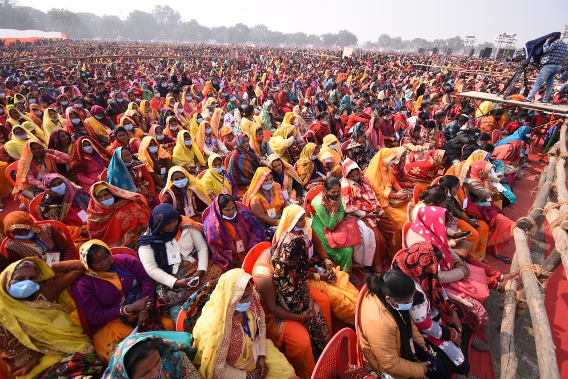 भारतीय सभ्यता और संस्कृति जितनी ही प्राचीन है अपने देश में नारियों को सम्मान देने की परंपरा। डबल इंजन (मोदी और योगी) की सरकार इसी परंपरा को लगातार आगे बढ़ा रही है। मंगलवार (21 दिसंबर 2021) को तीरथ राज प्रयाग की धरती पर आयोजित ,नारी “शक्ति-देश की शक्ति” कार्यक्रम इसी की एक कड़ी है। इस कार्यक्रम में मुख्यमंत्री योगी आदित्यनाथ की उपस्थिति में प्रधानमंत्री नरेन्द्र मोदी ने स्वयं सहायता समूह की 16 लाख महिलाओं के बैंक खातों में एक हजार करोड़ रुपये का ऑन लाइन ट्रांसफर किया। संबधित ग्रामीण महिलाओं को सामाजिक और आर्थिक रूप से आत्म निर्भर बनाने में यह आयोजन मील का पत्थर साबित होगा। यही नहीं इस दौरान 43 जिलों के 202 ब्लाकों में टेक होम राशन वितरण का भी प्रधानमंत्री ने शिलान्यास किया। साथ ही बेटियों के हित में योगी सरकार द्वारा शुरू की गई बेहद महत्वाकांक्षी योजना “मुख्यमंत्री कन्या सुमंगला” के तहत 1.01 लाख बेटियों (नए लाभार्थियों) के खातों में 20 करोड़ रुपए का ऑनलाइन ट्रांसफर भी प्रधानमंत्री ने किया।