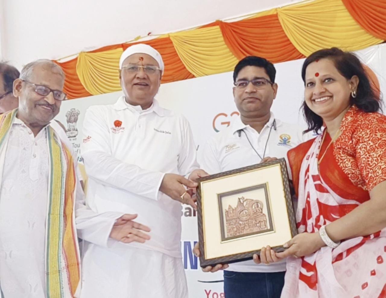 भारतीय पर्यटन वाराणसी के सहनिदेशक अमित कुमार गुप्ता, सुबह ए बनारस के समन्वयक डॉ. रत्नेश वर्मा ने दिल्ली से पधारीं,काशी की बेटी डॉ. इन्दु जैन राष्ट्र गौरव को नवीन संसद भवन के ऐतिहासिक उद्घाटन समारोह में आयोजित सर्वधर्म प्रार्थना सभा में जैनधर्म एवं काशी का गौरवपूर्ण प्रतिनिधित्व करने के लिए विशेष रूप से सम्मानित किया । डॉ. इन्दु जैनदर्शन के सुप्रसिद्ध विद्वान प्रो.फूलचंद जैन प्रेमी की सुपुत्री हैं और वे अपनी सफलता का श्रेय जिनेन्द्र प्रभु, चार तीर्थंकरों की जन्मभूमि बनारस की पवित्र धरती , मां -पिताजी,गुरुजन को देती हैं । इस कार्यक्रम में पद्मश्री प्रो. सरोज चुड़ामणि, बैंक ऑफ बड़ौदा श्री नीलमणि, अजय गुप्ता आदि गणमान्य व्यक्ति तथा अनेक योगप्रेमी उपस्थित थे ।