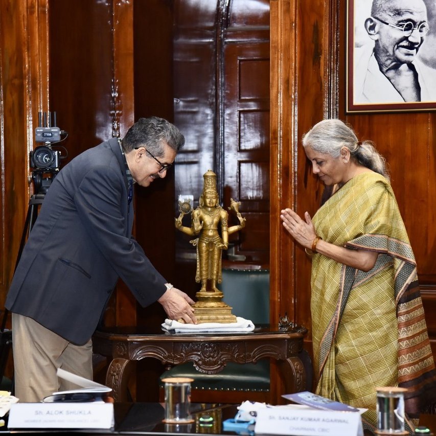 Smt @nsitharaman handed over 2 feet 40-kg bronze statue of Lord Vishnu (Perumal) to Director General @ASIGoI during the handing-over ceremony of 101 antiquities at seven Customs locations across India.