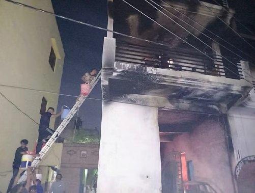 गाजियाबाद । दिल्ली से लगे गाजियाबाद के बेहटा हाजीपुर गांव में पार्किंग ठेकेदार सारिक के दो मंजिला मकान में बुधवार रात आठ बजे भीषण आग लग जाने से दो मासूम बच्चे और दो महिलाओं समेत पांच लोग जिंदा जल गए। ये पांचों धुएं की वजह से बाहर नहीं निकल सके। रात 12 बजे इनके शव निकाले गए। एक युवती और एक बच्चा बुरी तरह झुलस गए हैं। आग लगने की वजह मकान की पहली मंजिल पर रखीं मशीनों में बिजली का शार्ट सर्किट होना मानी जा रही है।