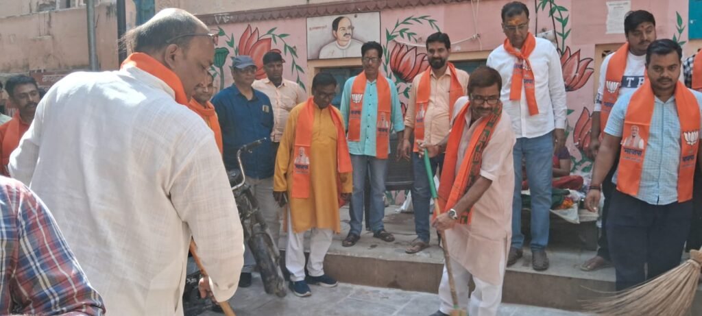 स्वच्छता के संकल्प में जुटे भाजपा कार्यकर्ता, मंत्री दयाशंकर मिश्र दयालु ने खुद उठाई झाड़ू
