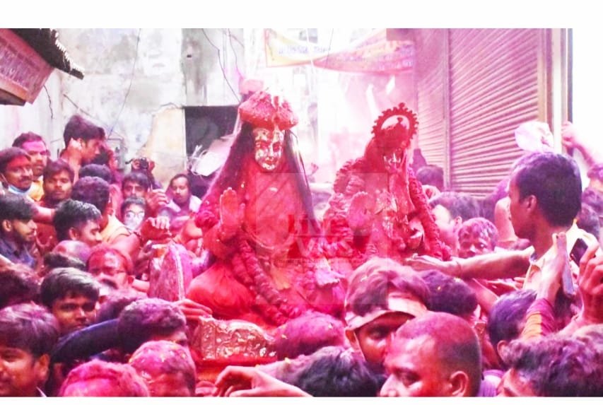 काशीपुराधिपति बाबा श्रीकाशी विश्वनाथ आज अपनी अर्धांगिनी मां गौरा का गौना कराके ससुराल से निकले तो काशी की गलियां कई कुंतल अबीर गुलाल व रंगों से सराबोर हो गयीं। इस अद्भुत घड़ी में चांदी की पालकी पर सवार देवाधिदेव महादेव और मां पार्वती ने काशीवासियों संग जमकर होली खेली तो उनके भक्त गदगद हो उठे। कॉरिडोर निर्माण के बीच आज एक अद्भुत नजारा भी दिखा। रंगभरी एकादशी के 357 वर्ष के इतिहास में इस साल यह पहला संयोग था जब महंत के आवास से निकली माता गौरा की पालकी विश्वनाथ धाम के मंदिर पहुंची तो बाबा भोले ने गौरा संग सीधे अविरल बह रही मां गंगा से भी रूबरू हुए। बाबा विश्वनाथ की नगरी में रंगभरी एकदशी के इस महा रस्म के साथ काशी में रंग और गुलाल से पूरा महौल होलियाना हो गया। मथुरा और ब्रज की होली मशहूरजरूर है लेकिन काशी की होली का अंदाज निराला है।