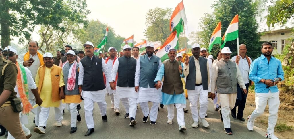 दुद्धी : सरदार वल्लभ भाई पटेल की 150वीं जयंती पर राष्ट्रीय एकता पदयात्रा निकाली गई। इस यात्रा का शुभारंभ मुख्य अतिथि मड़िहान विधायक रमाशंकर पटेल ने झंडी दिखाकर किया। इस यात्रा में भाजपा कार्यकर्ताओं के अलावा, प्रबुद्धजन, अधिकारी-कर्मचारी और स्कूली बच्चों के शामिल होने से पूरा कस्बा तिरंगामय नजर आया। विभिन्न स्कूलों के बच्चे हाथ में तिरंगा लहराते हुए चल रहे थे। विहिप कार्यकर्ता संदीप गुप्ता ने पदयात्रियों पर पुष्प वर्षा कर स्वागत किया। भारी संख्या में यह यात्रा नगर भ्रमण किया। पद यात्रा में मुख्य अतिथि के साथ सैकड़ों की संख्या में पद यात्रा किया। पदयात्रा के दौरान दुद्धी से पदयात्रा चलकर महुली मैदान पहुंची और जनसभा में तब्दील हो गयी।