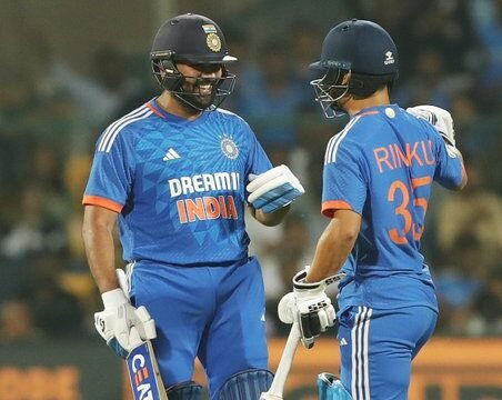 ऐसी परिस्थिति में अनुभवी कप्तान रोहित शर्मा ने ना केवल रिंकू सिंह के साथ पारी को संभाला। दोनों बल्लेबाजों ने पांचवें विकेट लिये तूफानी अंदाज में रिकार्ड 190 रन जोड़े। रोहित शर्मा ने 11 चौके और आठ छक्कों की मदद से 69 गेंदों में नाबाद 121 रन बनाये। वहीं रिंकू सिंह ने दो चौके और छह छक्कों की मदद से 39 गेंदों में नाबाद 69 रनों की पारी खेली। भारत ने निर्धारित 20 ओवरों में 212 का विशाल स्कोर खड़ा किया है और अफगानिस्तान को जीत के लिए 213 रन बनाने है।अफगानिस्तान की ओर से फरीद अहमद ने तीन विकेट लिये। अजमतउल्लाह उमरजई ने एक बल्लेबाज को आउट किया। (वार्ता)