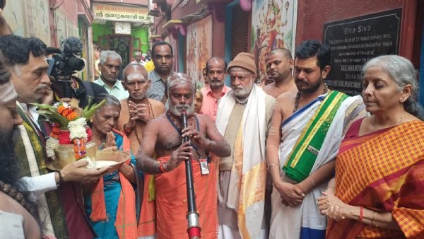 वाराणसी । केद्रीय वित्त और कॉर्पोरेट मामलों की मंत्री निर्मला सीतारमण ‘काशी तमिल संगमम’ में शामिल होने के लिए वाराणसी पहुंच चुकी हैं। केन्द्रीय मंत्री ने शनिवार को केदार घाट, हनुमान घाट पर पूजा अर्चना की और गंगा नदी में नौकायन किया। इसके बाद शहर के तमिल बहुल स्थानों में भ्रमण के साथ श्री विशालाक्षी मंदिर, श्री कुमारस्वामी मठ, काशी नट्टुकोट्टई नागरथर सथिराम, श्री चक्रलिंगेश्वर मठ में भी दर्शन पूजन किया।केन्द्रीय वित्त मंत्री निर्मला सीतारमण हनुमान घाट स्थित तमिल महाकवि भारतियार (सुब्रह्मण्य भारती) के हनुमानघाट स्थित आवास पर भी पहुंचीं। यहां आवास का अवलोकन करने के बाद उन्होंने उनके वयोवृद्ध भांजे और परिवार के सदस्यों से मुलाकात की।