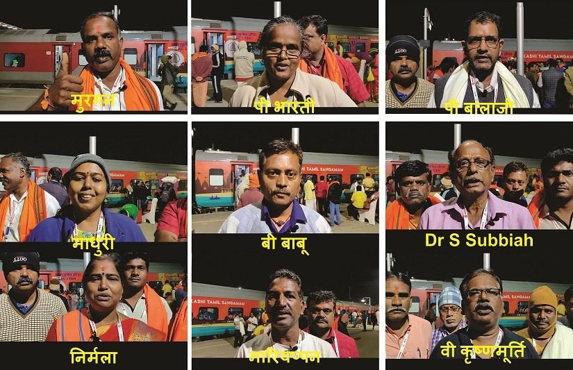 तमिलनाडु के जोलारपट्टी के श्री कलाइमंगल कॉलेज ऑफ़ एजुकेशन की असिस्टेंट प्रोफ़ेसर निर्मला ने काशी तमिल संगमम के आयोजन को अच्छा बताया। कहा कि सरकार के अधिकारी और नेताओं ने सभी तमिल मेहमानों का ख्याल एक परिवार की तरह रखा। चेन्नई से आई आरती ने कहा अभी वो योगी सरकार के कार्यों को 9 नंबर देती हैं, लेकिन जिस तरह से उत्तर प्रदेश में काम हो रहा है वे अगली बार आएंगी तो 10 नंबर जरूर देंगी। तमिलनाडु कांचीपुरम से आये असिस्टेंट प्रोफेसर बी बालाजी ने कहा यूपी में 200 प्रतिशत बदलाव आया है। योगी और मोदी का साथ और योगी जी के दोबारा मुख्यमंत्री बनने के बाद उत्तर प्रदेश बहुत अच्छा हो गया है।