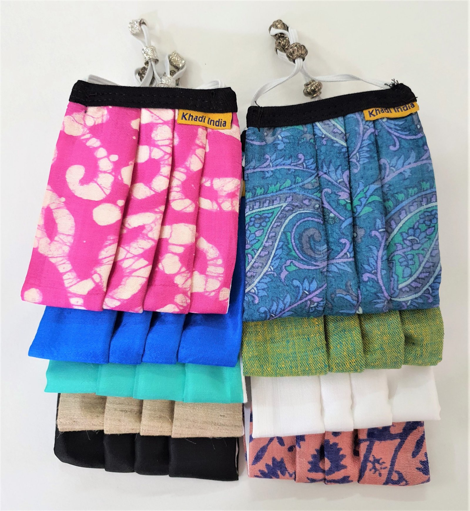 केवीआईसीखादी सूती और सिल्क दोनों मास्क बेच रहा है। जहां सूती फेस मास्क की कीमत नाममात्र 30 रुपये प्रति मास्‍क है, वहीं सिल्क मास्क 100 रुपये प्रति मास्‍क उपलब्ध हैं। मास्क की ऑनलाइन खरीद के लिए न्यूनतम 500 रुपये का ऑर्डर दिया जा सकता है, जिसमें खरीदारों के पास यह विकल्‍प है कि वे उपलब्ध चार प्रकार के मास्क में से अपनी पसंद के मास्‍क चुन सकते हैं, यानी काली पाइपिंग के साथ सफेद सूती मास्क, ट्राइ-कलर पाइपिंग के साथ सफेद सूती कॉटन मास्क, ठोस रंगों में सिल्क मास्क और अनेक रंगों में प्रिंटेट सिल्क मास्क। KVIC खरीद की तारीख से 5 दिनों के भीतर मुफ्त में मास्क वितरित करता है। वर्तमान में ऑनलाइन बिक्री केवल देश के भीतर ही मान्य है।