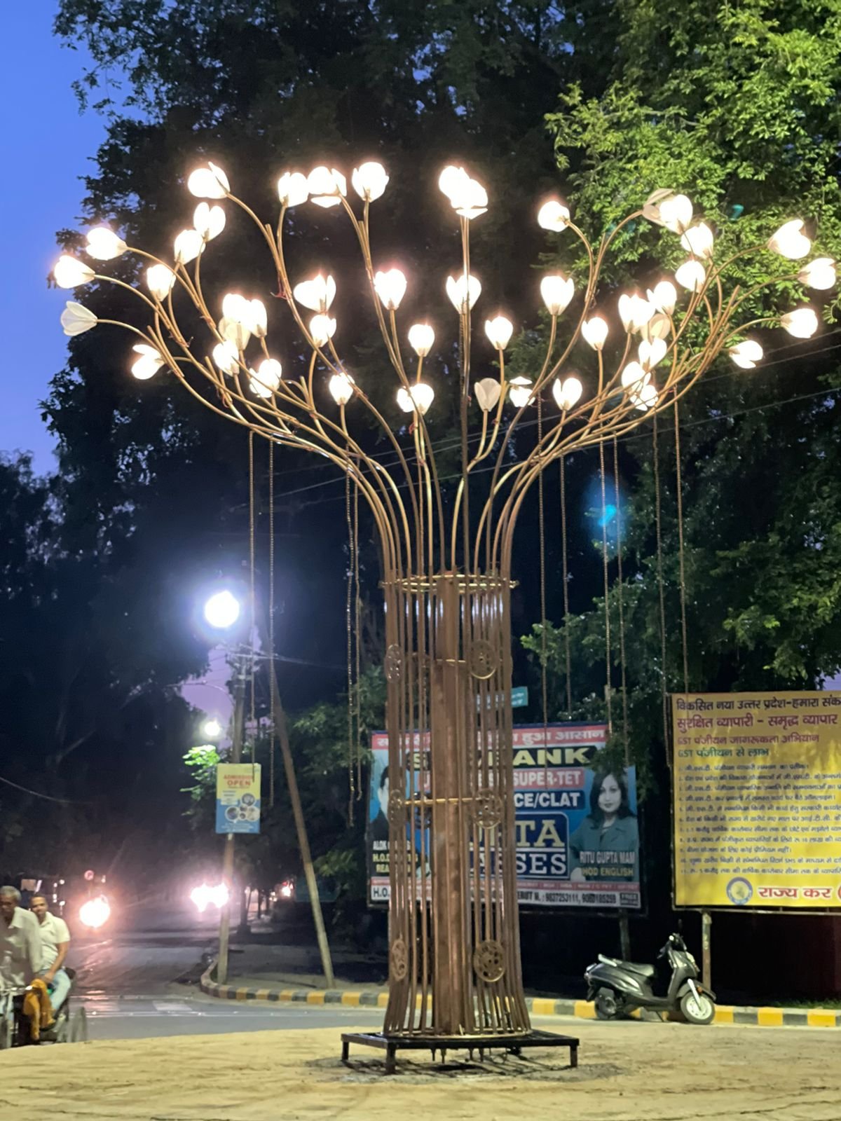 योगी सरकार की अवधारणा को साकार करते हुए मेरठ नगर निगम ने शहर को चमकाने के लिए अनोखे प्रयोग किए, जो काफी सफल रहे। दरअसल नगर निगम में बने गोदाम में पड़े कबाड़ की न तो उचित कीमत मिल रही थी और न ही इसका सही उपयोग हो रहा था पर योगी सरकार की पहल पर नगर आयुक्त अमित पाल शर्मा ने शहर को जगमगाने का निर्णय लिया। नगर निगम योगी सरकार के निर्देशन में शहर के सौन्दर्यीकरण के लिए आगे भी ऐसे प्रयोग करता रहेगा। लाइटिंग वाला कृत्रिम पेड़ भी न सिर्फ लोगों को आकर्षित कर रहा है, बल्कि शहर की खूबसूरती में चार चांद लगा रहा है। इसकी आभा देख लोग निहाल हो रहे हैं।