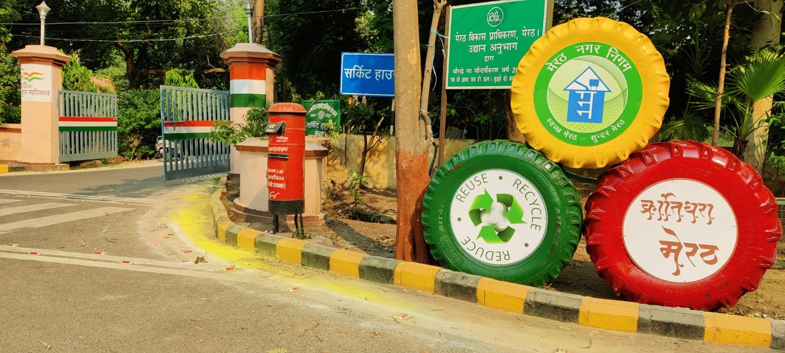 योगी सरकार के प्रयासों को प्रधानमंत्री ने मन की बात में सराहा.कबाड़ से किया जा रहा मेरठ शहर का सौंदर्यीकरण.स्क्रैप, पुराने टायर, खराब ड्रम से हो रही मेरठ में पर्यावरण की सुरक्षा.कबाड़ से किया जा रहा मेरठ शहर का सौंदर्यीकरण.