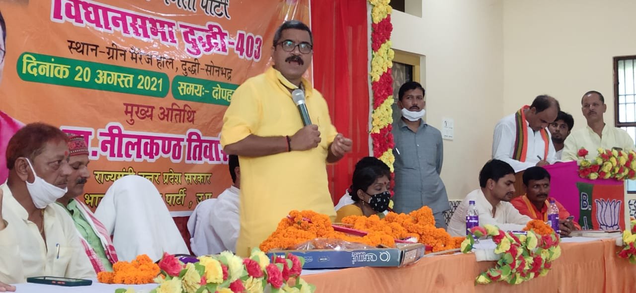 दुद्धी,सोनभद्र– प्रदेश में गुंडाराज एवं भ्रष्टाचार का खात्मा कर योगी सरकार ने यह संदेश दे दिया है कि भाजपा सरकार की कथनी और करनी में कोई अंतर नही।उक्त बातें सूबे के पर्यटन राज्य मंत्री नीलकंठ तिवारी ने कार्यकर्ताओं को सम्बोधित करते हुए कहा।उन्होंने कार्यकर्ताओं में जोश भरते हुए कहा कि मिशन 2022 की तैयारी में अभी से लग जायें।आपसी मतभेदों को भुलाकर जनता को मोदी और योगी सरकार की उपलब्धियों को बताना है और विपक्षियों को भी धूल चटाना है।