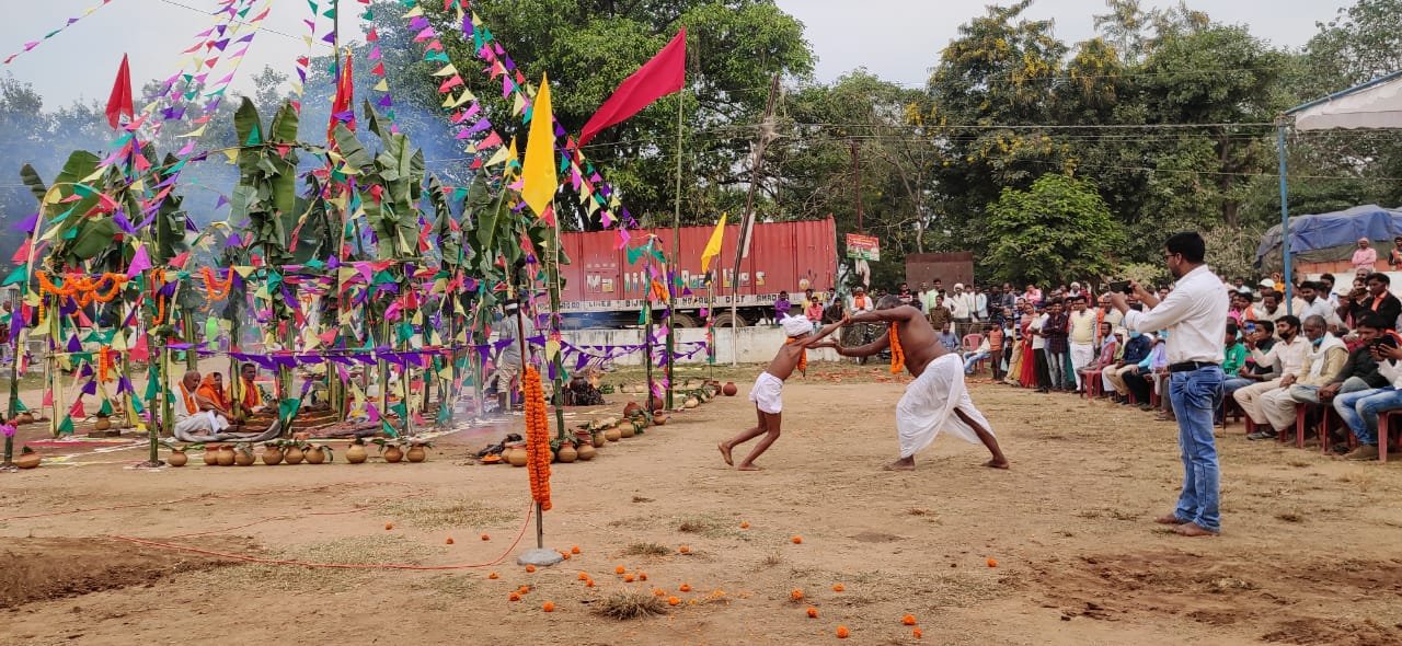 दुद्धी, सोनभद्र- स्थानीय टीसीडी मैदान पर हो रहे गोवर्धन पुजा के दौरान पहलवानों ने दिखाई दमखम।बुधवार को पुजारी बाबा के साथ आये हुए गाजीपुर के पहलवानों ने ऐसा करतब दिखाया कि लोग देखते ही रह गए।पहलवानों ने टेंट से भी ऊपर रस्सी को उछल कूद करते छू लिया जबकि एक पहलवान ने दो – तीन पहलवानों के एक साथ बाहों में पकड़कर मैदान कर चक्कर लगा दिया जिसकी लोगों ने जमकर सराहना करते हुए पुरस्कृत किया।गाजीपुर से आये हुए पहलवानों ने तरह तरह के हैरतअंगेज करतब दिखाया।गोवर्धन पूजा में पहलवानों की हैरतअंगेज करतब की नगर में चर्चा होती रही।