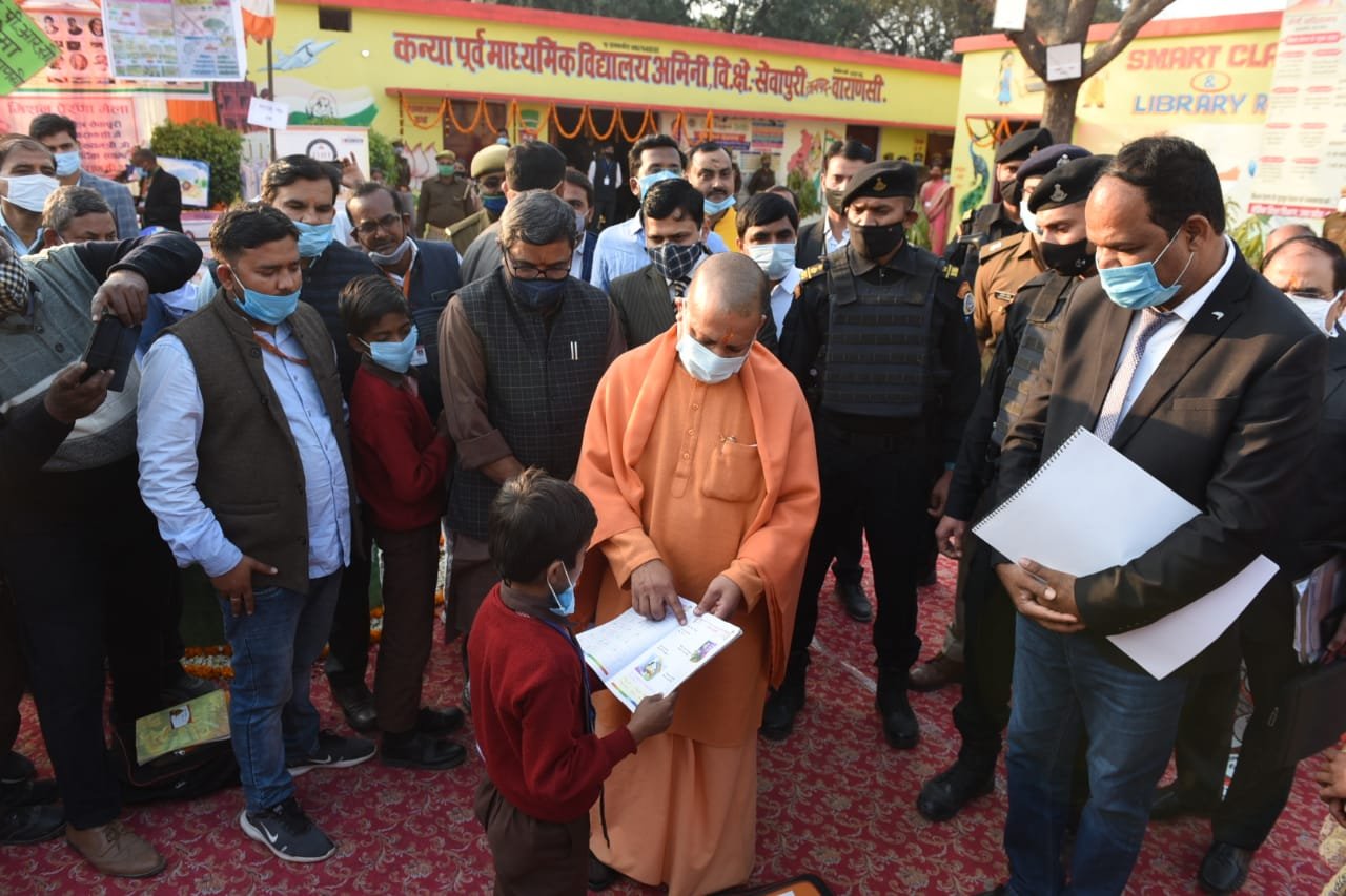 दरअसल जब मुख्यमंत्री परिसर स्थित प्राइमरी विद्यालय का निरीक्षण कर रहे थे तो वह अचानक की बच्चों की एक क्लास में गए। वहां बच्चों को के पठन-पाठन के संबंध में जानकारी करते हुए मुख्यमंत्री योगी आदित्यनाथ ने कक्षा 3 के छात्र अंश यादव से अंग्रेजी के किताब में लिखे “आई लव कलर” का अर्थ जानना चाहा। तो अंश ने कहा कि मैं रंगों से प्यार करता हूं। उसका उत्तर सुनकर मुख्यमंत्री ने उसे शाबाशी देते हुए फिर पूछा कि उत्तर प्रदेश में कुल कितने जिले हैं, अंश ने 75 जिला बताया, तो क्लास में मौजूद अन्य बच्चों से मुख्यमंत्री ने जिलों का नाम बताने को कहा। तो बच्चे जिलों का नाम बताने लगे इस पर मुख्यमंत्री ने कहा कि अरे नहीं-नहीं चलो तुम जिस जिले में रहते हो उसी का नाम बता दो, तो अंश यादव ने जनपद का नाम वाराणसी बताने के साथ धाराप्रवाह प्रदेश के कई जिलों का नाम बता दिया। मुख्यमंत्री हैरत से उसे देखते रहे। इस पर मुख्यमंत्री ने शिक्षा के गुणवत्ता को खूब सराहा। बच्चों के उत्तर से मुख्यमंत्री प्रभावित हुए और उन्होंने बहुत अच्छे कहते हुए बच्‍चों की पीठ भी थपथपाई।