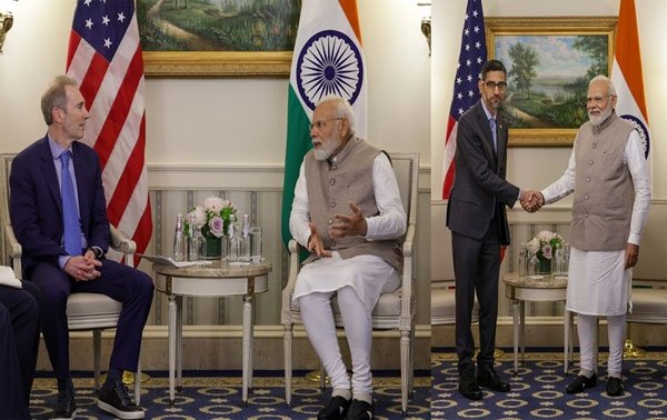 प्रधानमंत्री नरेन्द्र मोदी ने अमरीका की तीन बड़ी कंपनियों गूगल, अमेज़न और बोइंग के मुख्य कार्यकारी अधिकारियों से मुलाकात की। गूगल के सुंदर पिचाई ने श्री मोदी से कहा कि गूगल भारत में डिजीकरण कोष में 10 अरब डॉलर का निवेश कर रहा है। उन्होंने यह घोषणा भी की कि गूगल अपना वैश्विक फिनटेक ऑरपरेशन केंद्र गुजरात के गिफ्ट सिटी में खोलेगा। श्री पिचाई ने कहा कि डिजिटल इंडिया का प्रधानमंत्री का दृष्टिकोण अन्य देशों के लिए भी प्रेरणा का स्रोत है।