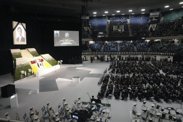 राजकीय अंतिम संस्कार समारोह में भारत के प्रधानमंत्री नरेन्द्र मोदी, अमेरिका की उप राष्ट्रपति कमला हैरिस, सिंगापुर के प्रधानमंत्री ली सीन लूंग, ऑस्ट्रेलियाई प्रधानमंत्री एंथनी अल्बनीज, वियतनामी राष्ट्रपति गुयेन जुआन फुक, दक्षिण कोरिया के प्रधानमंत्री हान डक-सू, फिलीपींस की उपराष्ट्रपति सारा डुटर्टे-कार्पियो, इंडोनेशिया के राष्ट्रपति मारुफ अमीन, यूरोपीय परिषद के अध्यक्ष चार्ल्स मिशेल समेत 217 देशों के करीब 700 प्रतिनिधि मौजूद रहे।इस मौके पर प्रधानमंत्री फुमियो किशिदा, पार्लियामेंट स्पीकर हिरोयुकी हासोदा, सुप्रीम कोर्ट के चीफ जस्टिस सबुरो टोकरा और आबे के करीबी सहयोगी पूर्व प्रधानमंत्री योशिहिदे सुगा ने उनके व्यक्तित्व पर संबोधन किया। सबसे पहले जापान के शाही परिवार के दूत ने शिंजो आबे को श्रद्धांजलि दी। (हि.स.)।