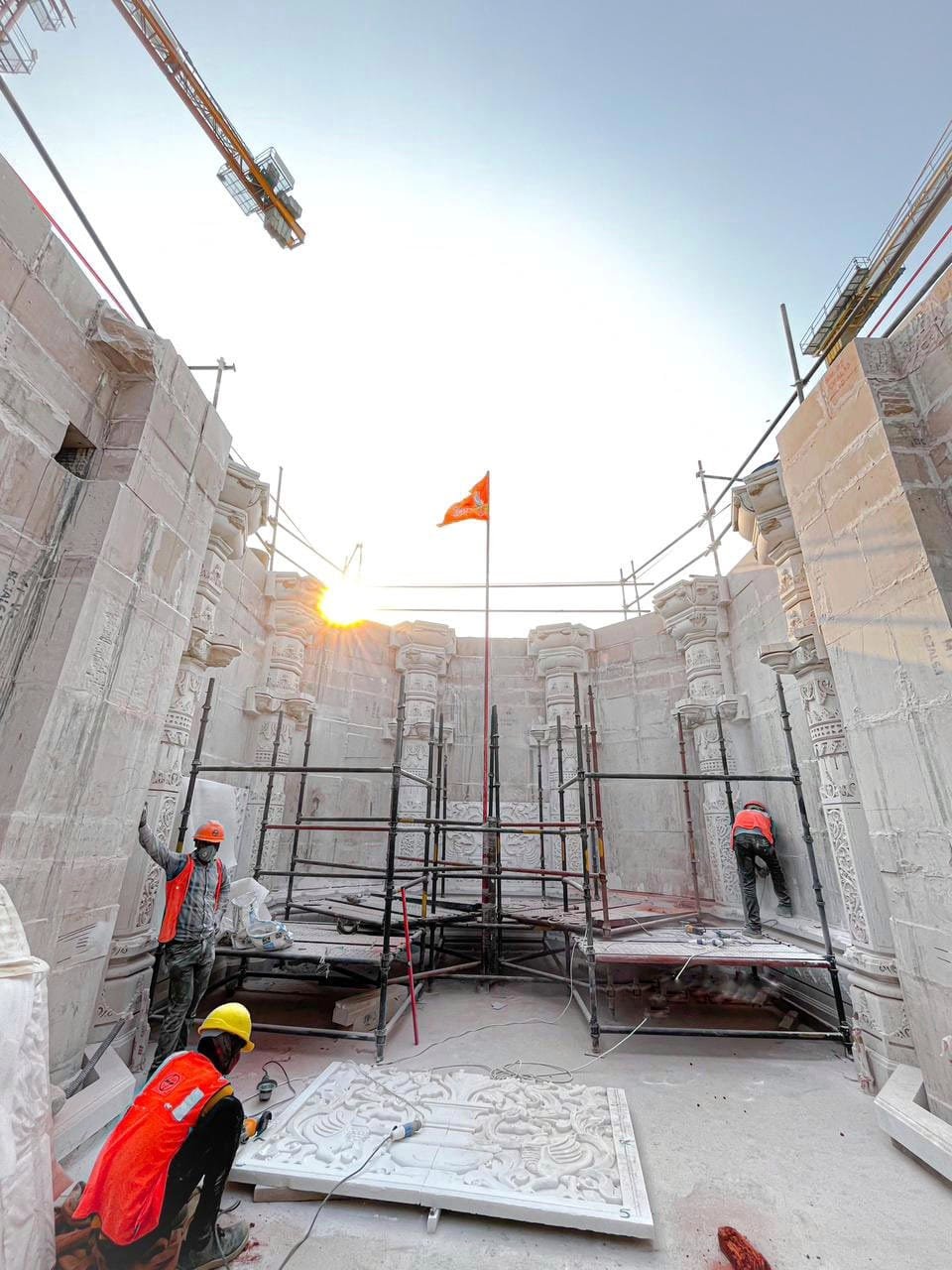 ट्रस्ट के सदस्य डॉ. अनिल मिश्र ने बताया, ”मंदिर निर्माण का काम तय समय से आगे बढ़ रहा है। जल्द ही गर्भगृह की बीम डालने का काम शुरू हो जाएगा। राम मंदिर की छत के करीब 200 बीम की नक्काशी का काम हो चुका है। बीम की तराशी रामसेवक पुरम और रामघाट स्थित कार्यशाला में हो रही है। जो पत्थर तराशे जा चुके हैं, उन्हें राम जन्मभूमि परिसर में पहुंचाया जा रहा है।
