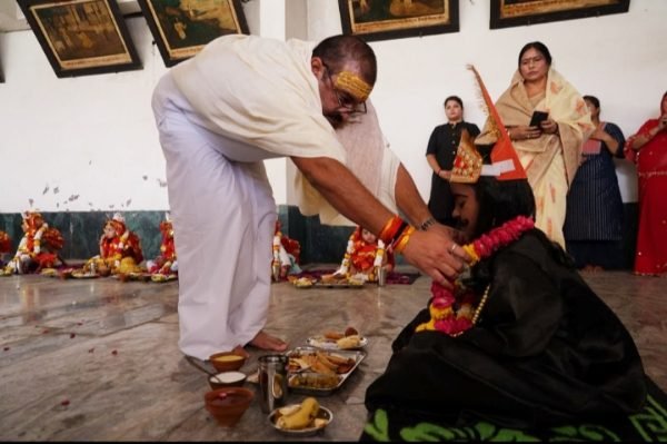 वाराणसी । वासंतिक चैत्र नवरात्र के नवमी तिथि पर रविवार को रवीन्द्रपुरी स्थित अघोराचार्य बाबा कीनाराम अघोर शोध एवं सेवा संस्थान में पीठाधीश्वर एवं सर्वेश्वरी समूह,अघोर सेवा मंडल के अध्यक्ष बाबा सिद्धार्थ गौतम राम ने विधि विधान से नौ कन्याओं का पूजन किया और भैरव के बाल स्वरूप (बालकों )का विधिवत पूजन कर आरती उतारी। उन्होंने नन्हीं कुंवारी कन्याओं को लाल-लाल चुनरी ओढ़ायी और उनके पांव पखारे।