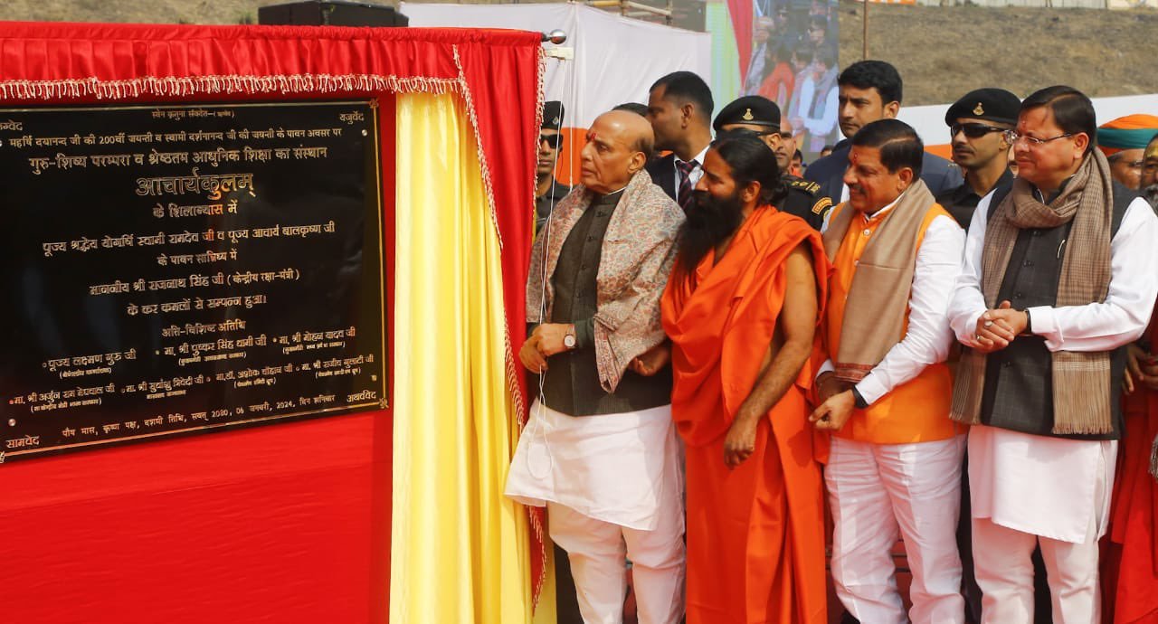 देहरादून/हरिद्वार : रक्षा मंत्री राजनाथ सिंह ने शनिवार को आशा व्यक्त की कि स्वामी रामदेव जी के दिशानिर्देशन में संचालित पतंजलि गुरुकुलम् भारतीय संस्कृति व सनातन की ध्वजवाहक बनेगा।श्री सिंह ने पतंजलि योगपीठ के 29वें स्थापना दिवस, पतंजलि योगपीठ महर्षि दयानन्द सरस्वती जी की 200वीं जयन्ती एवं गुरुकुल ज्वालापुर के संस्थापक पूज्य स्वामी दर्शनानन्द जी की जयन्ती के अवसर पर विश्व के श्रेष्ठतम गुरुकुल ‘पतंजलि गुरुकुलम्’ व देश के श्रेष्ठतम शिक्षण संस्थान आचार्यकुलम् की नवीन शाखा का शिलान्यास करते हुए यह बात कही।