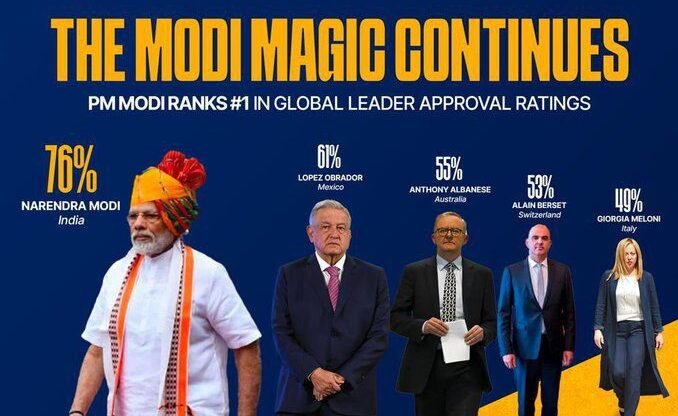 ग्लोबल लीडर अप्रूवल रेटिंग लिस्ट में दुनिया के सबसे लोकप्रिय नेता बने PM मोदी