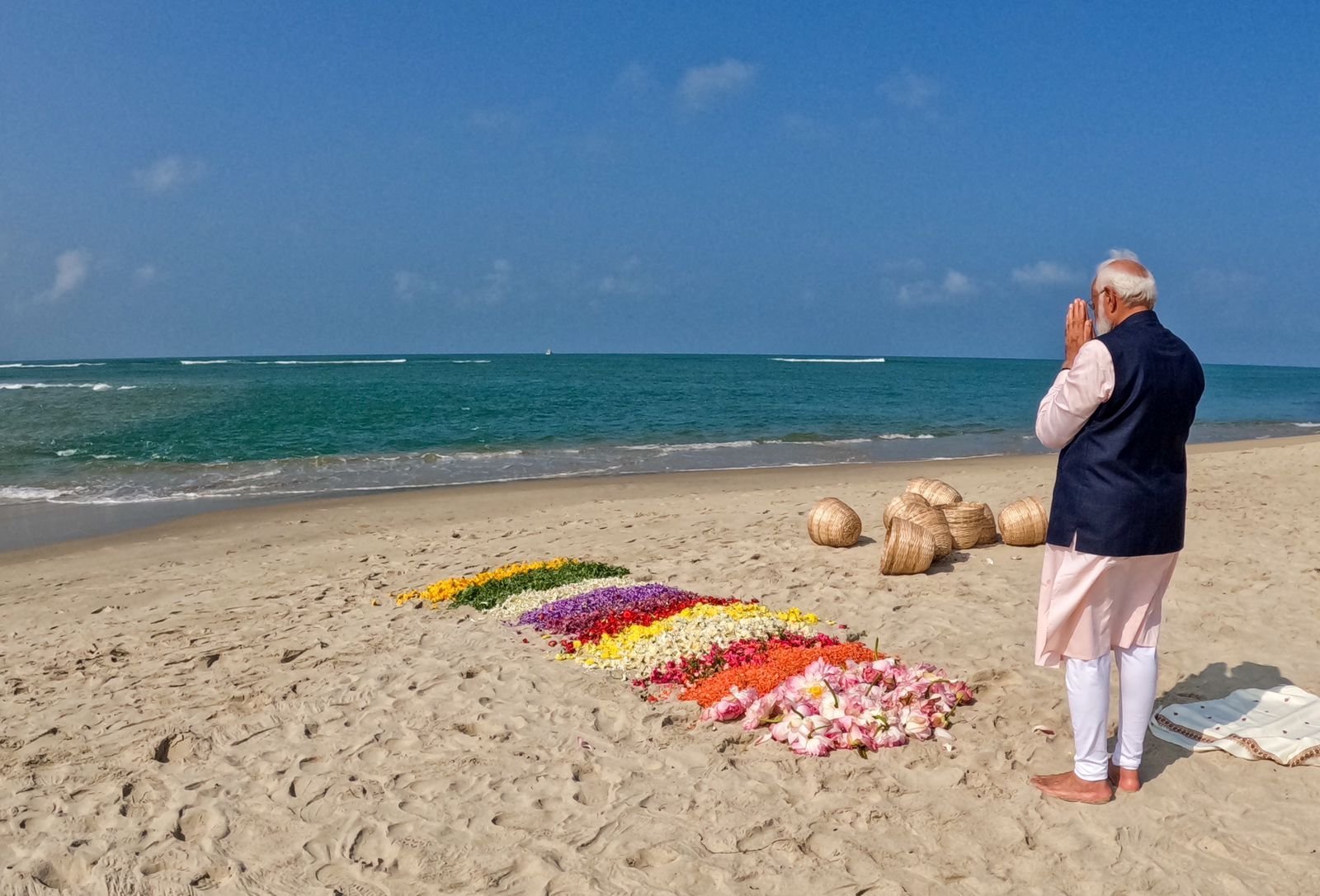 उन्होंने समुद्र तट पर कुछ समय बिताया, कुछ देर ध्यान किया और समुद्र में फूलों की पंखुड़ियाँ बरसाईं और प्रार्थना की। उन्होंने अरिचल मुनाई में राष्ट्रीय प्रतीक के साथ स्थापित अशोक स्तंभ पर पुष्पांजलि भी अर्पित की।धनुषकोडी और अरिचल मुनाई में लगभग एक घंटा बिताने के बाद श्री मोदी रामेश्वरम के लिए रवाना हुए जहां से वह हेलीकॉप्टर द्वारा मदुरै पहुंचे और नयी दिल्ली के लिए रवाना हो गए।श्री मोदी ने अपनी तीन दिवसीय यात्रा के दौरान शुक्रवार शाम को यहां खेलो इंडिया यूथ गेम्स का उद्घाटन किया, धनुषकोडी की यात्रा के साथ अपना दौरा समाप्त करने से पहले, शनिवार को त्रिची के श्रीरंगम में श्री रंगनाथस्वामी मंदिर और रामनाथपुरम में भगवान रामनाथस्वामी मंदिर का दौरा किया।(वार्ता)