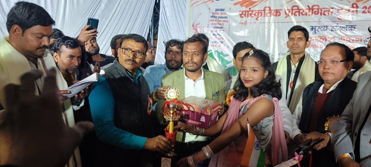 दुद्धी, सोनभद्र : गणतंत्र दिवस पर अखंड भारत सांस्कृतिक महोत्सव के तत्वावधान में रंगारंग सांस्कृतिक प्रतियोगिता में नन्हे-मुन्ने बच्चों ने खूब धमाल मचाया। एकल डांस में सुंदर प्रस्तुति से कार्यक्रम में शमां बांधने वाले 6 वर्षीय नटखट बालक प्रांजल पाण्डेय और ग्रुप डांस में एक्स वन एक्स ने बाजी मारकर विनर शील्ड व पुरस्कार पर कब्जा कर लिया।