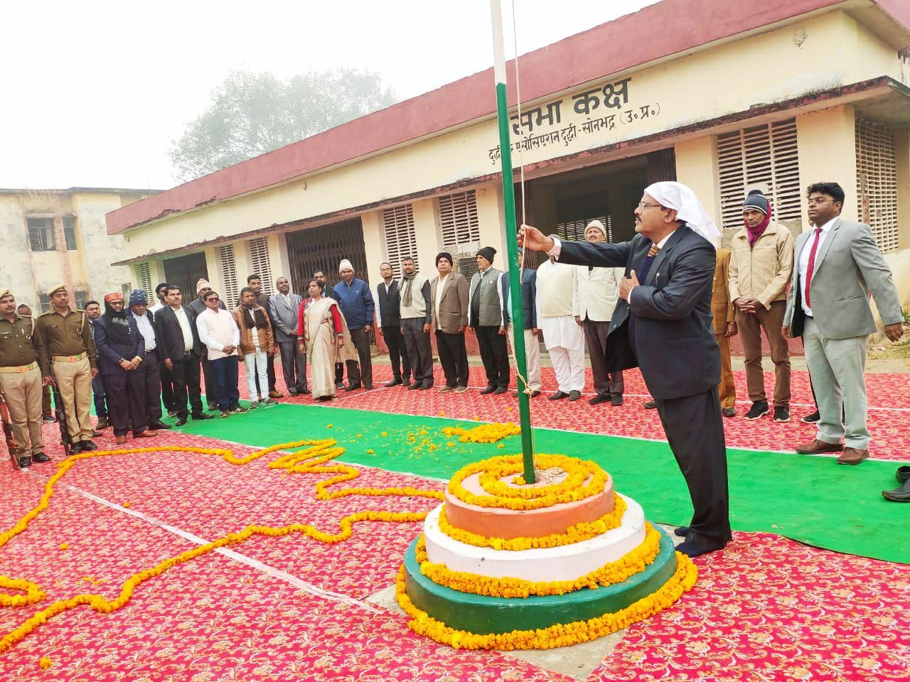 दुद्धी,सोनभद्र- तहसील मुख्यालय व आसपास के क्षेत्र में मंगलवार को गणतन्त्र दिवस धूमधाम से मनाया गया | नगर स्थित विधान सभा कार्यालय पर विधायक हरिराम चेरो ने झंडारोहण कर,सलामी दी।उन्होंने समारोह को सम्बोधित करते हुए कहा कि पूरे देश में 72 वां गणतंत्र दिवस पूरे धूमधाम से मनाया जा रहा है।केंद्र व प्रदेश की सरकार ने अपनी कल्याणकारी नीतियों से देश को विकसित देशों की श्रृंखला में लाने का काम किया है।पूरी दुनियां की नजर भारत पर टिकी है।लेकिन वहीं देश विरोधी कुछ ताकतें देश को खंडित करने में लगी हैं।ये किसानों की आड़ में किसान आंदोलन के नाम पर देश की राजधानी में अराजकता फैलाने का काम कर रहे हैं।