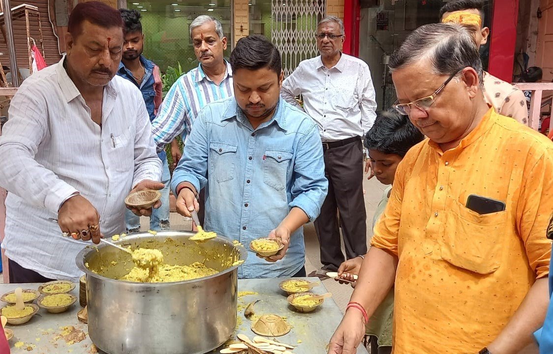 वाराणसी। अग्रणी सामाजिक संस्था संकल्प द्वारा संचालित संकल्प अन्न क्षेत्र द्वारा श्रावण मास के पॉचवें शनिवार को आसभैरव, चौक स्थित श्री संकटमोच हनुमान जी को भोग लगाने के बाद कन्हैयालाल गुलाल चन्द सर्राफ के सामने प्रसाद (खिचड़ी) वितरण किया गया। जहां प्रसाद प्राप्त करने के लिए महादेव श्री काशी विश्वनाथ जी के दर्शन को आने वाले श्रद्धालुओं, क्षेत्र में जीवीकोपार्जन करने वाले श्रमिकों एवं व्यापारियों की लम्बी लाइन लगी रही। साथ ही बताशा, इलायची एवं रेवड़ी के साथ जल सेवा की व्यवस्था किया गया, जिसका हजारों लोगों ने लाभ उठाया।