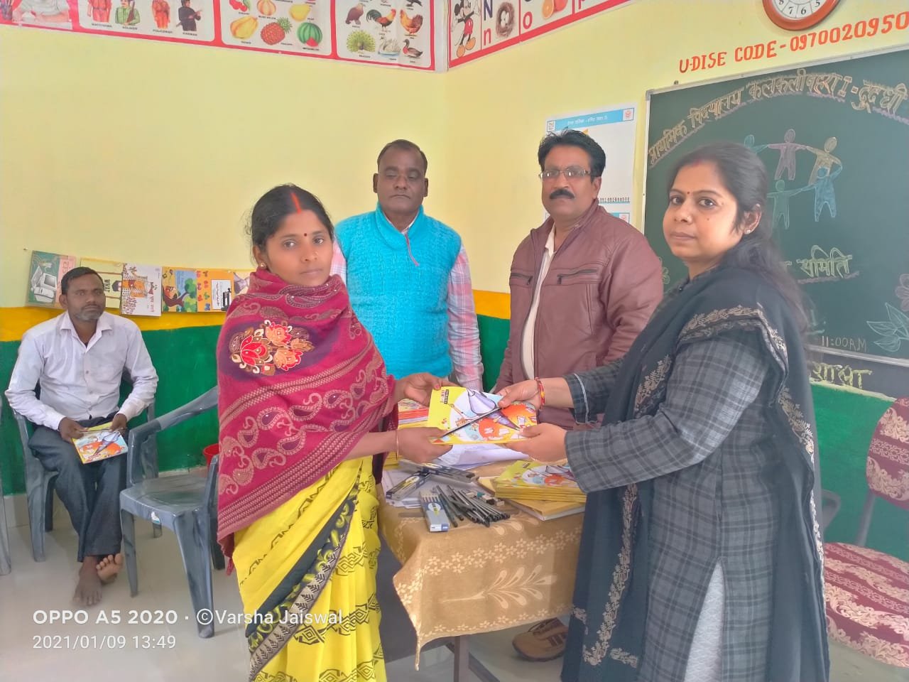 प्रधानाध्यापिका वर्षा रानी जायसवाल व विद्यालय परिवार द्वारा अभिभावकों को स्वयं शिक्षित होकर बच्चों के जीवन में शिक्षा की अनवरत जोत प्रकाशित करने के लिए प्रौढ़ शिक्षा की ओर अग्रसर करने हेतु समस्त अभिभावकों को कॉपी व पेन प्रदान कर सम्मानित किया गया। संकुल शिक्षक मुंशीराम द्वारा अभिभावकों को विद्यालय के विकास में कदम से कदम मिलाकर चलने के लिए प्रेरित किया गया। प्रधानाध्यापिका द्वारा शासन द्वारा संचालित मिशन कायाकल्प योजना के अंतर्गत भौतिक परिवेश के संवर्धन से परिचित कराया गया। जिसके अंतर्गत विद्यालय में समुचित टायलीकरण, इंटरलॉकिंग अंडर ग्राउंड विद्युतीकरण, सौर ऊर्जा द्वारा संचालित समरसेबल, मल्टीपल हैंड वॉश सिस्टम, रंगाई-पुताई, फर्नीचर की व्यवस्था, पुस्तकालय, शौचालय, मूत्रालय , पेयजल की व्यवस्था, पौधीकरण आदि अवस्थापना के मूलभूत संसाधनों द्वारा विद्यालय का संतृप्ति करण समस्त अभिभावकों को दिखाया गया। मिशन प्रेरणा की ऑनलाइन शैक्षिक सुविधाओं द्वारा भी अभिभावकों को जागरूक किया गया। इस अवसर पर वरिष्ठ अध्यापक लक्ष्मीपुरी सिंह ने समस्त अभिभावकों को विद्यालय विकास में अपना सहयोग देने का आह्वान किया। सहायक अध्यापक राजकुमार मिशन प्रेरणा लक्ष्य प्राप्त करने के लिए संकल्पित हुए। सहायक अध्यापिका सरिता, अनारो, जगती,अनिल, लालची देवी समेत गांव के समस्त अभिभावक उपस्थित रहें।