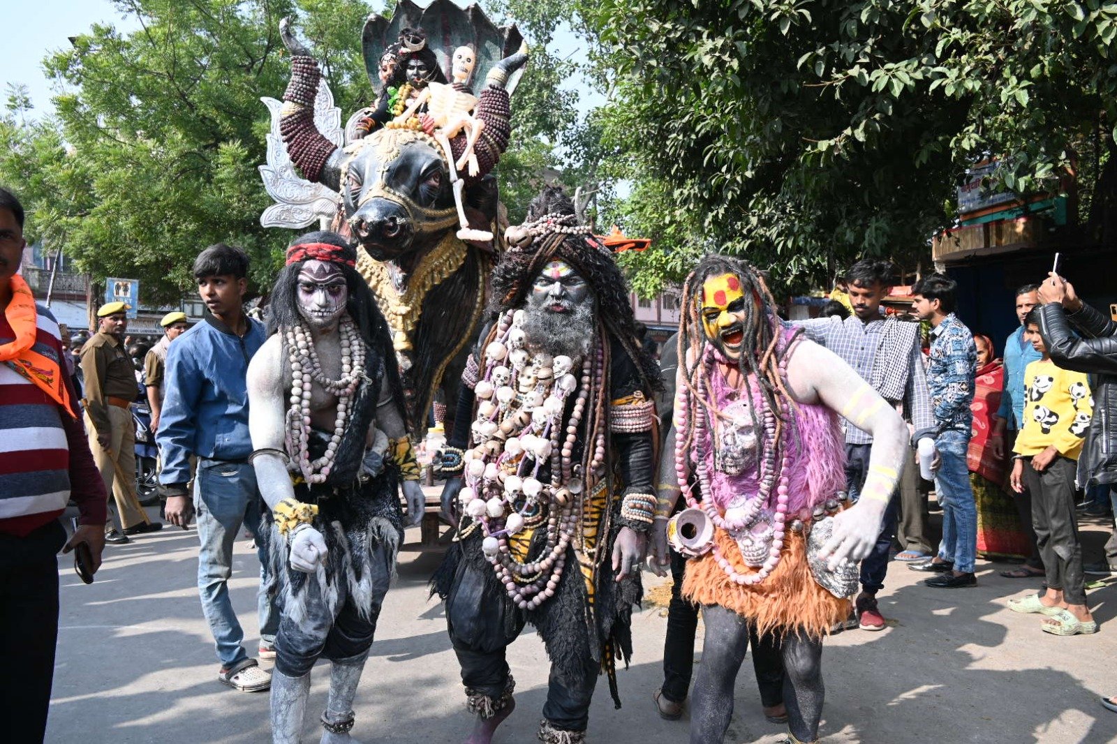 धाम में पूजा पाठ के साथ निकली शोभा यात्रा . शंखनाद और डमरुवादन से गूंज उठा महादेव का आंगन . महारुद्राभिषेक, हवन पूजा व प्रसाद वितरण किया गया .