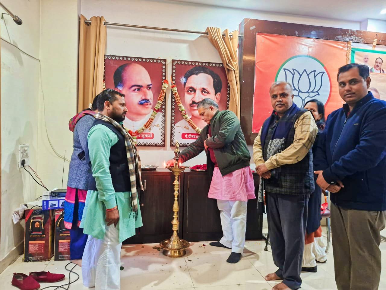 बैठक को प्रदेश संयोजक उत्तर प्रदेश दिव्यांग प्रकोष्ठ उत्तम ओझा ने संबोधित करते हुए कहाकि प्रधानमंत्री मोदी की प्रेरणा से चलाये जा रहे सुगम्य भारत अभियान से प्रभावित होकर अयोध्या में बन रहे भगवान श्री राम का मंदिर दिव्यांगजनों के अनुकूल है यह पहला ऐसा विश्व का मन्दिर बनाया जा रहा है जिसमें दिव्यांगजन आसानी से जाकर दर्शन पूजन कर सकेंगे और उनको सहज सरल रूप से दर्शन सुलभ होगा, उन्होने आगे कहा कि इस देश के संसाधन में जितनी भागीदारी सामान्य जनों की है उतनी भागीदारी दिव्यांग जनों की भी है, दिव्यांग जनो की सामाजिक आर्थिक एवं राजनीतिक विकास पर कार्य करने की जरूरत है भारतीय जनता पार्टी देश में पहली ऐसी पार्टी है जिसने दिव्यांग प्रकोष्ठ का गठन करके दिव्यांगजनों को राजनीतिक भागीदारी देने का काम किया है, दिव्यांगों की संख्या लगभग पूरी भारत में 10 करोड़ है, उत्तर प्रदेश में दो करोड़ दिव्यांग है ये दिव्यांग मतदाता सरकार बनाने में निर्णायक भूमिका निभा सकते है देश का कोई भी पोलिंग स्टेशन नहीं है जिस पर दिव्यांग मतदाता ना हो भारत के प्रत्येक बूथ पर दिव्यांग मतदाता है जरूरत है हमें इनके अंदर राजनीतिक चेतना जागृत करके इन्हें राष्ट्र की मुख्य धारा में लाने की ।