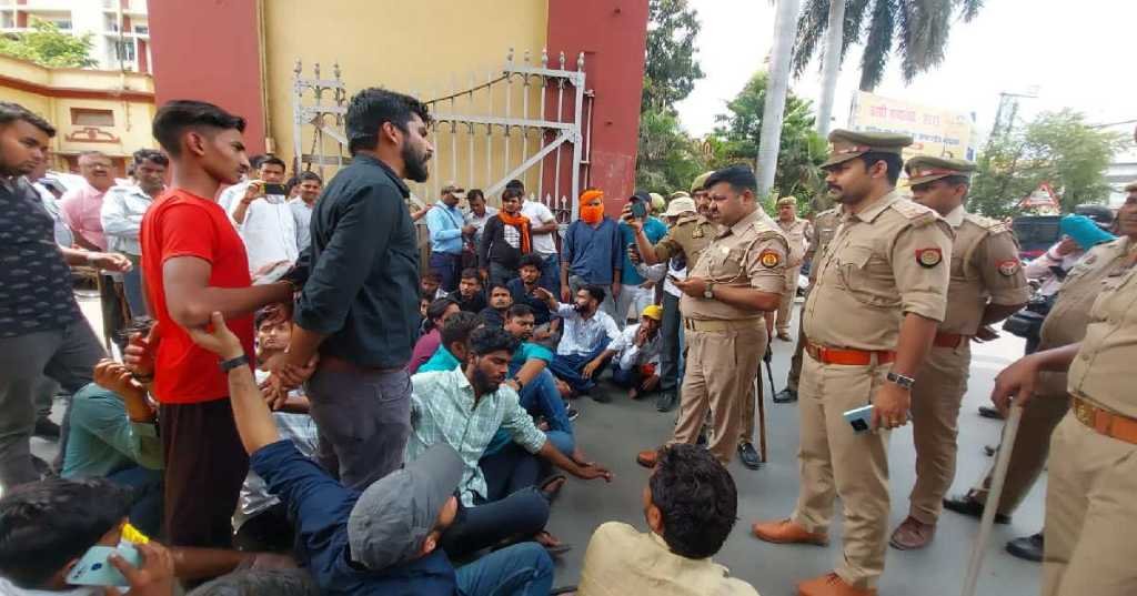 #वाराणसी बीएचयू के छात्रों को ट्रामा सेंटर के इंचार्ज द्वारा 40 मिनट तक बंधक बनाए जाने के विरोध में छात्र सिंहद्वार को बंद कर धरना प्रदर्शन कर रहे हैं#BHU pic.twitter.com/vZ9ICb4eOM