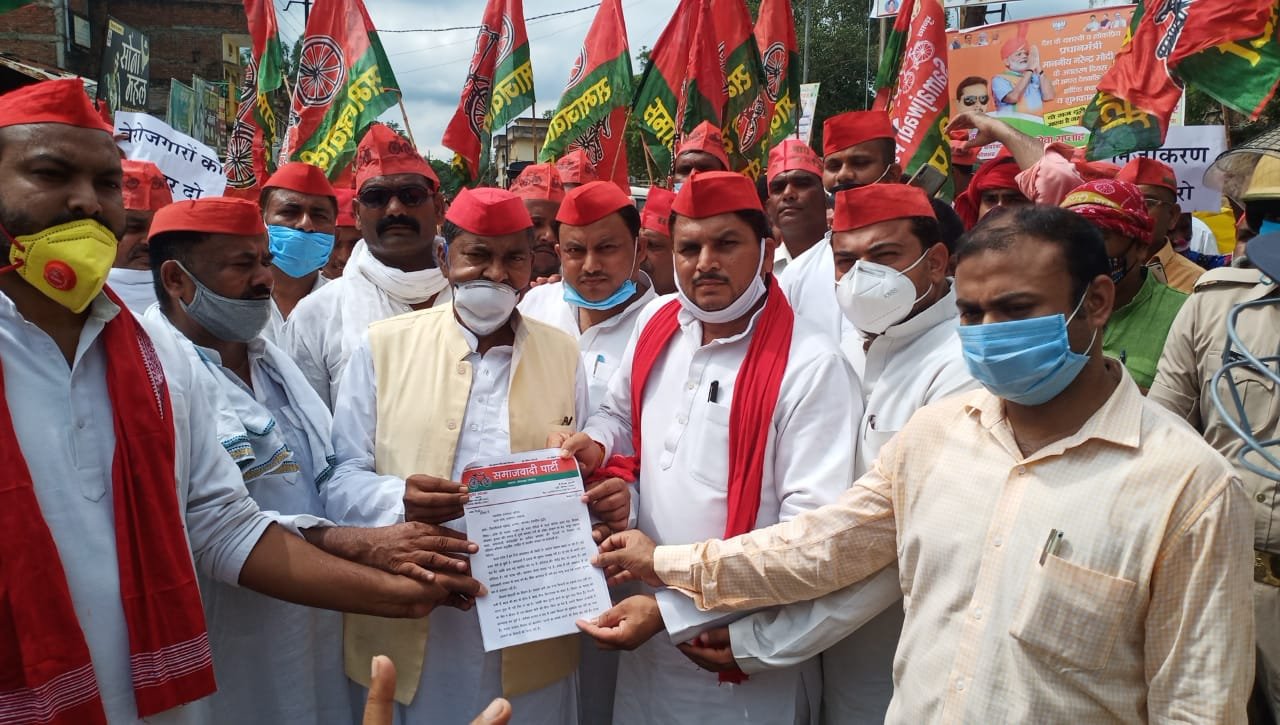 पूर्व मंत्री विजय सिंह गोंड के नेतृत्व में सपाइयों ने किया प्रदर्शन,सौंपा ज्ञापन