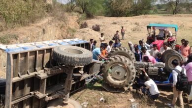 सरिया लदा ट्रैक्टर पलटा ड्राईवर की मौत