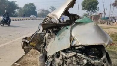 जश्न मना कर बिहार वापस जा रहे युवकों की कार डिवाइडर से टकराई 1 की मौत 8 घायल