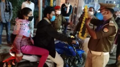 यातायात पुलिस ने चलाया अनोखा अभियान, हेलमेट न लगाने वालों को पहनाएं पुष्पहार