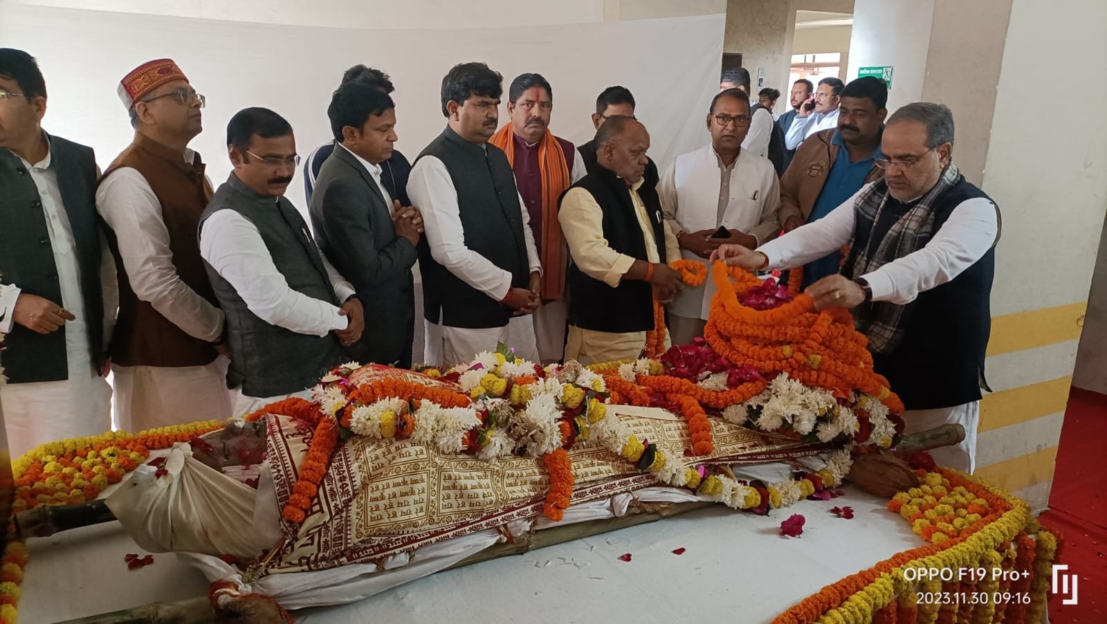 वरिष्ठ भाजपा नेताओं ने श्री ओझा के पार्थिव शरीर को ओढ़ाया पार्टी का झंडा