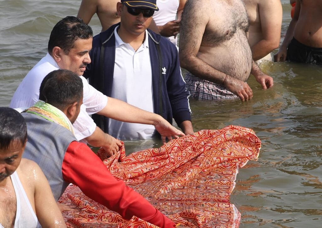 शर्मा ने त्रिवेणी संगम में स्नान कर खुद को माना धन्य, योगी सरकार के प्रयासों की तारीफ की, कहाः भव्य व्यवस्था करने के लिए बधाई के हैं पात्र.पश्चिम बंगाल के नेता प्रतिपक्ष शुभेन्दु अधिकारी ने भी लगाई आस्था की डुबकी, कहाः प्रयागराज की धरती अमृत संगम है, प्रत्येक सनातनी के लिए है यह गर्व का क्षण, सीएम योगी के प्रयासों को सराहा.शुक्रवार को तीर्थराज प्रयागराज के त्रिवेणी संगम में प्रसिद्ध उद्योगपति राजेश अदाणी, त्रिनिदाद एंड टोबैगो का प्रतिनिधिमंडल, लोजपा (रामविलास) की सांसद शाम्भवी चौधरी समेत कई दिग्गजों ने किया स्नान.