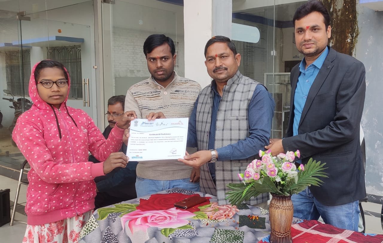 प्रशिक्षुओं को संबोधित करते हुए उन्होंने कहा कि प्रधानमंत्री की इस योजना से निश्चित तौर पर ग्रामीण परिवेश में रहने वाले युवाओं के सुनहरे भविष्य का मार्ग खुलेगा| प्रोजेक्ट हेड नरेंद्र शर्मा ने बताया कि देश के योग्य प्रशिक्षकों के जरिये इस संस्था में दाखिला लिए प्रशिक्षुओं को निःशुल्क प्रशिक्षण देकर उन्हें सहायक इलेक्टिशयन,रीटेल सेल्स एसोसिएट्स के तौर पर तैयार किया गया है| इस संस्था से निकलने वाला यह पहला बैच है| निदेशक दीपक तिवारी एवं सचिव औरंगजेब आलम ने अतिथियों का आभार व्यक्त करते हुए कहा कि संस्था द्वारा उत्तर प्रदेश के सोनभद्र व भदोही जनपद के अलावा मेघालय,झारखंड,बिहार,बंगाल एवं मध्य प्रदेश में युवाओं को क्वालिटीपरक प्रशिक्षण देने के कार्य में जुटी हुई है| इस मौके पर प्रशिक्षक रिया गुप्ता,विनीता,प्रतिभा आदि लोग उपस्थित रहे।