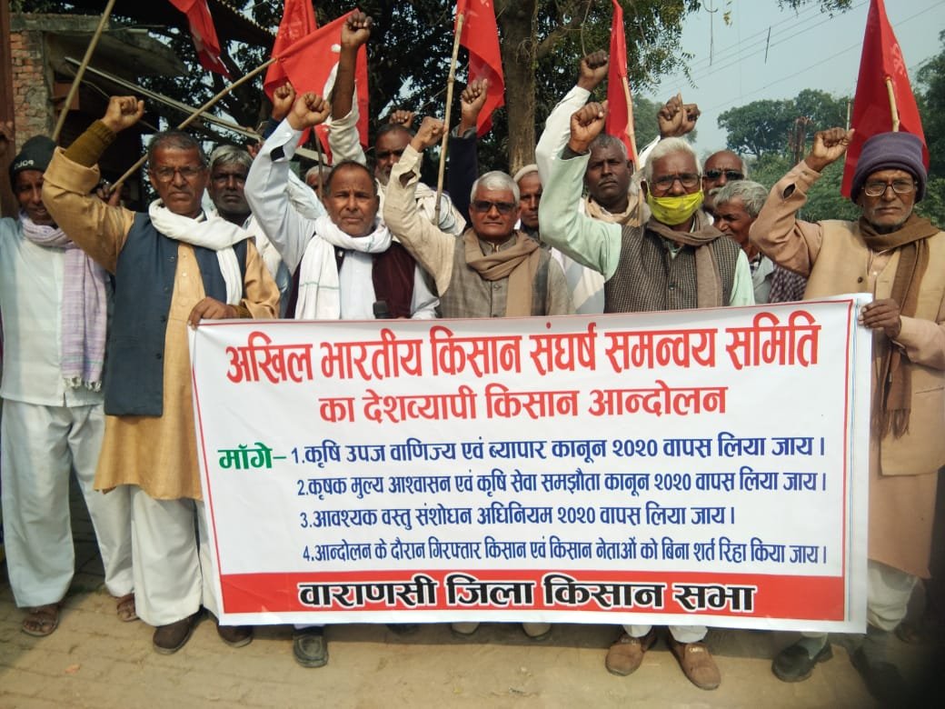 आवश्यक वस्तु संशोधन अधिनियम, बिजली कानून वापस लिया जाए।किसानों का कहना था कि आंदोलन में गिरफ्तार किसानों एवं किसान नेताओं को तत्काल रिहा किया जाए तथा उनके ऊपर लगाए गए मुकदमा को वापस लिए जाय। इस दौरान जिला मंत्री किसान सभा कामरेड रामजी सिंह ने बताया कि इस ठंड के मौसम में सरकार द्वारा आंदोलनरत किसानों के ऊपर ठंडे पानी का बौछारें तथा आंसू गैस के गोले छोड़े जा रहे हैं। ऐसा लग रहा है कि जैसे इस देश का अन्नदाता अपराधी और जुल्मी है। सरकार किसानों के प्रति ऐसा व्यवहार करना अनुचित है। इस अवसर पर मुख्य रुप से जिला किसान सभा महामंत्री रामजी सिंह ,संयुक्त मंत्री किसान सभा डॉ शिव शंकर शास्त्री,श्री राम पाल,रमाशंकर सिंह ,डॉ हौसला प्रसाद, कमला प्रसाद,बेचन प्रसाद, लालमणि वर्मा सदस्य समिति, कामरेड रामचंद्र शास्त्री, सोहन लाल गुप्ता, माता प्रसाद, बचानू, मुनीलाल, शंकर, गोवर्धन, दूधनाथ इत्यादि लोग शामिल रहे।