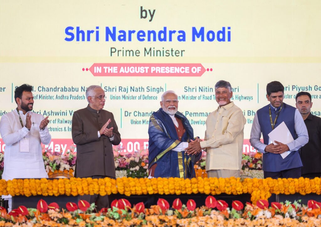 प्रधानमंत्री नरेन्द्र मोदी ने आंध्र प्रदेश की जनता और सरकार को राज्य की प्रगति में पूरा सहयोग देने का शुक्रवार को आश्वासन देते हुए कहा कि राज्य की नयी राजधानी के निर्माण कार्य से प्रदेश की अर्थव्यवस्था को बड़ा फायदा होगा।उन्होंने कहा कि चंद्रबाबू नायडू सरकार ने सत्ता में आने के बाद राज्य की प्रगति की राह की सभी बाधाओं को दूर करने का कार्य किया और आंध्र प्रदेश को विकसित भारत की वृद्धि का एक मजबूत इंजन बनाना है।राज्य की नयी राजधानी के विकास से जुड़ी विभिन्न परियोजनाओं के शुभारंभ के उपलक्ष्य में आयोजित जन सभा को संबोधित करते हुए प्रधानमंत्री ने कहा, “मैं आंध्र प्रदेश की जनता को, यहां जो मेरे सहयोगी बैठे हैं, सभी को फिर आश्वस्त करता हूं, आंध्र प्रदेश की प्रगति के लिए आप मुझे हमेशा अपने साथ कंधे से कंधा मिलाकर चलते हुए देखेंगे।”इस कार्यक्रम स्थल से उन्होंने करीब 60 हज़ार करोड़ रुपए की परियोजनओं का शिलान्यास और लोकार्पण किया और इन्हें विकसित भारत की उम्मीदों की मजबूत नींव बताया।
