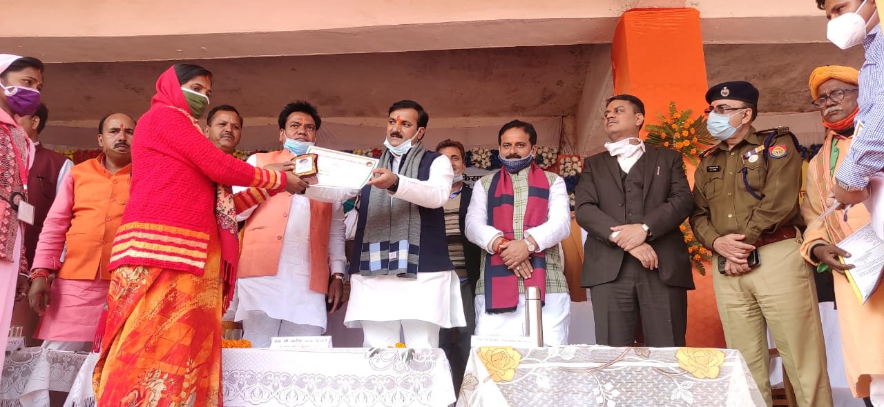 किंतु आज तक दुद्धी को जिला नही बनाया गया। आदिवासी बाहुल्य दुद्धी अति पिछड़ा क्षेत्र है, बिना जिला बनाये इसके विकास संभव नही है।जल्द से जल्द चुनावी वादा पूरी करने हेतु मुख्यमंत्री से वार्ता कर शीघ्र दुद्धी को जिला घोषित करवाने की मांग की।अन्त में मंत्री द्वारा दर्जनों महिला किसानों को स्मृति चिन्ह व प्रमाणपत्र भेंटकर सम्मान किया गया।इस दौरान भाजपा जिलाध्यक्ष अजीत चौबे,जिलाधिकारी एस राजलिंगम, एसपी अमरेंद्र प्रताप सिंह, एसडीएम रमेश कुमार, सीओ,श्रवण कुमार गोंड़, अध्यक्ष मनोज सिंह बबलू,मनोज मिश्रा, दिलीप पांडेय,मोनू सिंह, सुमित सोनी,मनीष जायसवाल समेत भारी संख्या में लोग उपस्थित रहे।