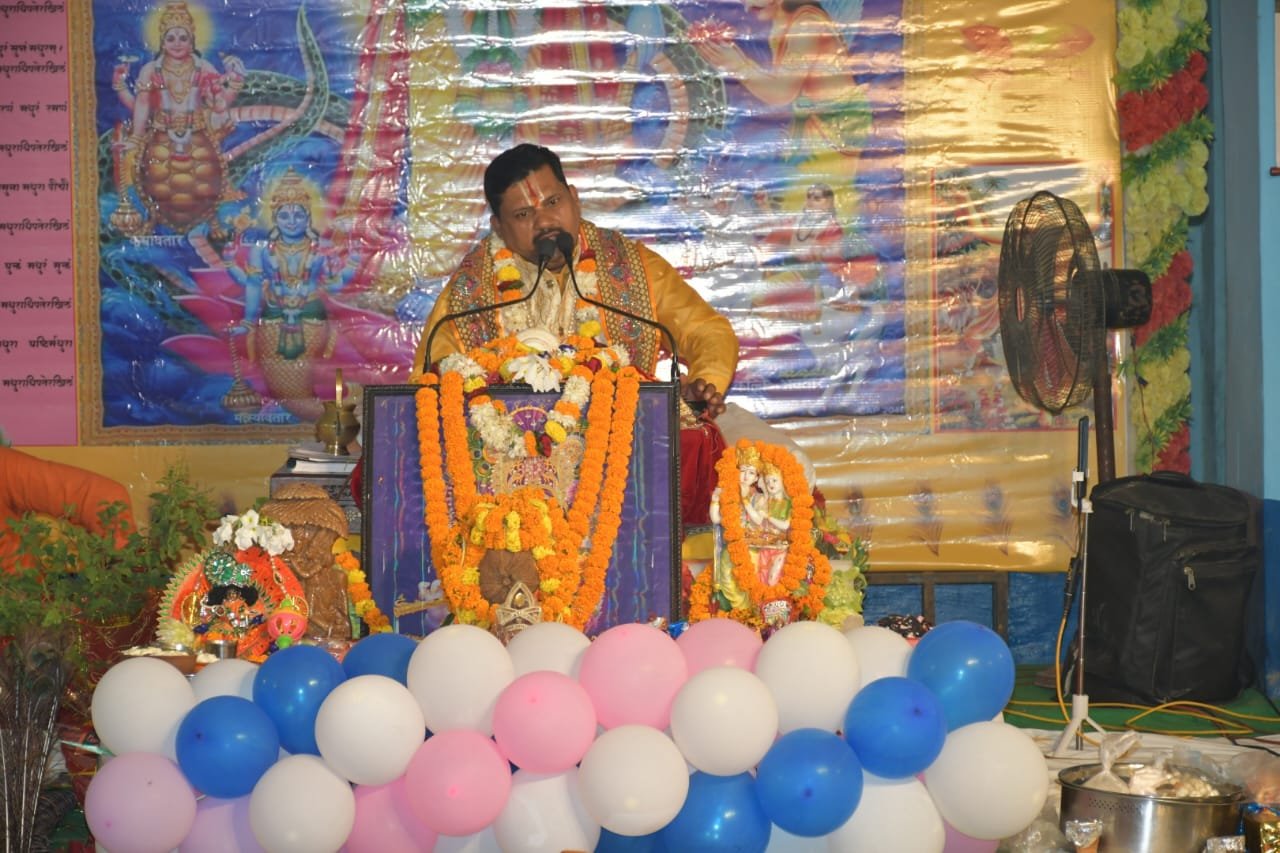 कथा के दौरान कथा व्यास चंद्रभूषण जी महाराज ने भगवान श्री कृष्ण की बाल लीलाओं का वर्णन कर धर्म, अर्थ, काम व मोक्ष की महत्ता पर प्रकाश डाला। उन्होंने कहा जब-जब अत्याचार और अन्याय बढ़ता है, तब-तब प्रभु का अवतार होता है। प्रभु का अवतार अत्याचार को समाप्त करने और धर्म की स्थापना के लिए होता है। जब कंस ने सभी मर्यादाएं तोड़ दी तो प्रभु श्रीकृष्ण का जन्म हुआ। यहां पर जैसे ही श्रीकृष्ण के जन्म का प्रसंग कथा में आया तो श्रद्धालु हरे राधा-कृष्ण के उदघोष के साथ नृत्य करने लगे।